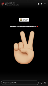 El cantante urbano compartió una historia en Instagram con el mensaje: “Estamos a un día, papi, voten bien”, acompañada por la canción Todos Juntos de Los Jaivas.